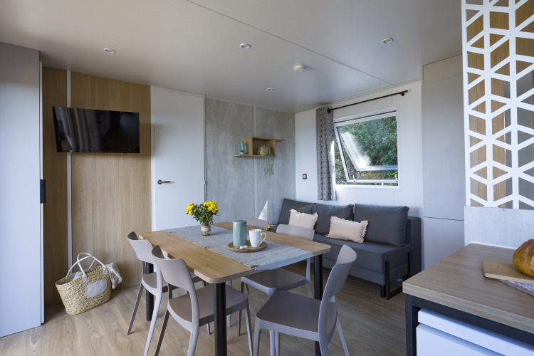For families or groups, there are larger options, such as the Privilege Méditerranée, suitable for four people. This accommodation features two bedrooms, a living room with TV, and a fully equipped kitchen. In addition, the Privilege Iroise offers extra luxury with two bathrooms and bedrooms, ideal for four people who want a little more privacy.