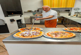 Feeling hungry? Grab a slice at the on‑site pizzeria or stock up at the supermarket in the park, which even offers online ordering – handy if you don’t feel like queueing. And if you want to explore, you’re in the ideal spot: go culture-hopping in Ravenna or Ferrara, experience the canals of Venice, or tick off a new country with a visit to San Marino. Closer by, Cesenatico and Comacchio tempt you with picturesque streets and fresh seafood at sunset.