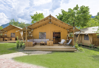 Lago Idro Glamping Boutique is located directly on the shore of Lake Idro, near the village of Anfo. You stay here surrounded by greenery, with mountains in the background and the water always close by. In the area you can go kayaking, paddleboarding, windsurfing, paragliding, cycling, and hiking. On the campsite you can choose from comfortable cabins, lodge tents, and chalets with views of the lake. The atmosphere is small-scale and relaxed: perfect for families, couples, and sports enthusiasts.