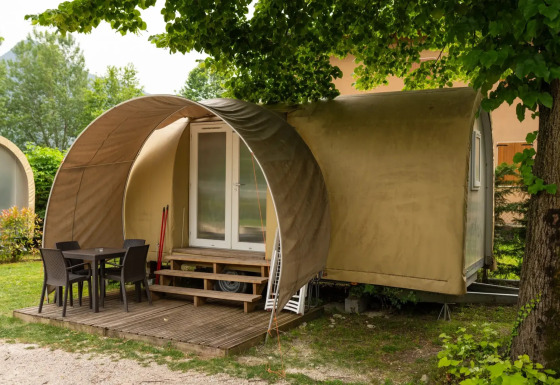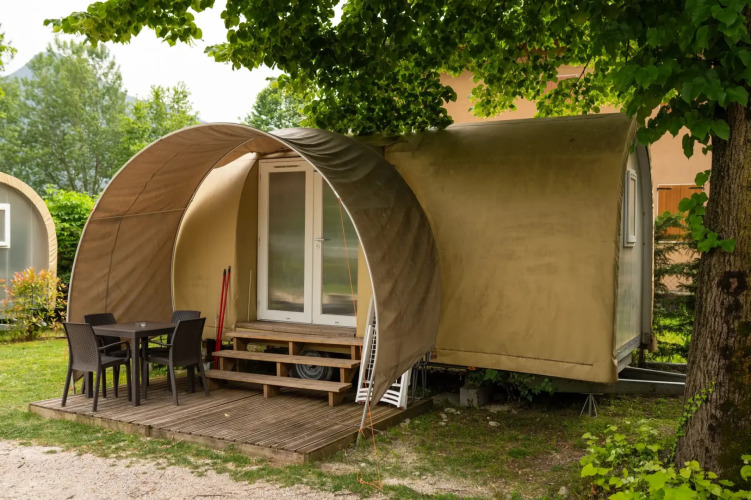 Lago Idro Glamping Boutique is located directly on the shore of Lake Idro, near the village of Anfo. You stay here surrounded by greenery, with mountains in the background and the water always close by. In the area you can go kayaking, paddleboarding, windsurfing, paragliding, cycling, and hiking. On the campsite you can choose from comfortable cabins, lodge tents, and chalets with views of the lake. The atmosphere is small-scale and relaxed: perfect for families, couples, and sports enthusiasts.