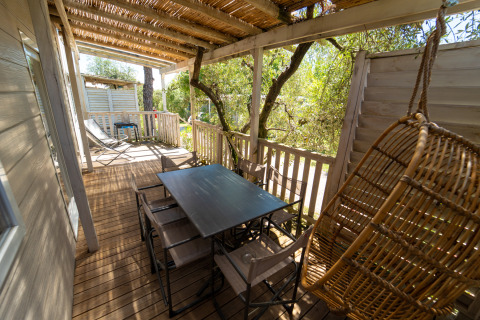 The Cottage Next XL Superior is the perfect choice for families seeking space and comfort in an atmospheric, natural setting. With three bedrooms—one cozy master bedroom and two rooms with single beds—this accommodation offers plenty of space for the whole family. The two bathrooms provide extra convenience, while the fully equipped kitchen is ideal for preparing the tastiest meals at a pleasant temperature thanks to the air conditioning. But the real holiday feeling is experienced on the large veranda. A wonderful place to enjoy long summer evenings together, surrounded by the peace of nature.