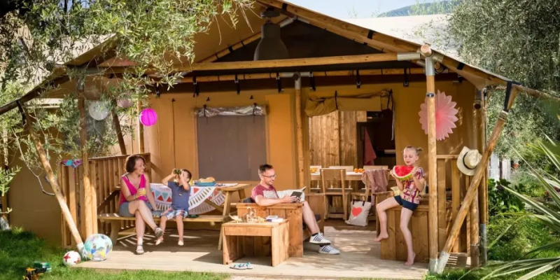 Weekend Glamping Resort, located in the San Felice del Banco area, offers a spectacular view over Lake Garda. Here, you stay in luxurious lodge tents or comfortable cottages, surrounded by olive trees and fully equipped with every convenience. With a swimming pool, slides, entertainment, pony rides, and fresh pizzas on the terrace, it feels like a holiday every day. The friendly atmosphere, child-friendly layout, and Italian hospitality make this an ideal glamping paradise for families.