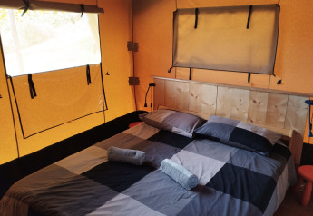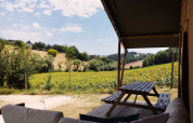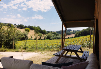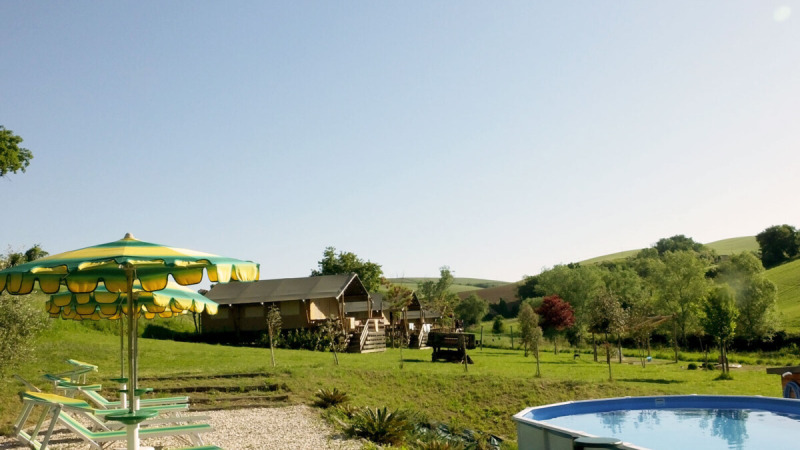 Discover Camping Suasa and book unforgettable moments in the heart of Le Marche. Immerse yourself in child-friendly activities such as yoga, silent disco, and children's cinema; slide down the slide, bounce on the trampoline, or score in the football cage. Enjoy comfort in the fully equipped safari tent with private bathroom and kitchen. Walk or cycle directly into the green hills, visit Roman ruins or sip local wines. Experience every day as different and special.