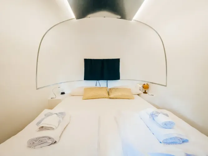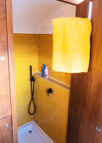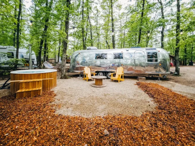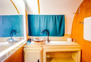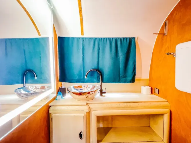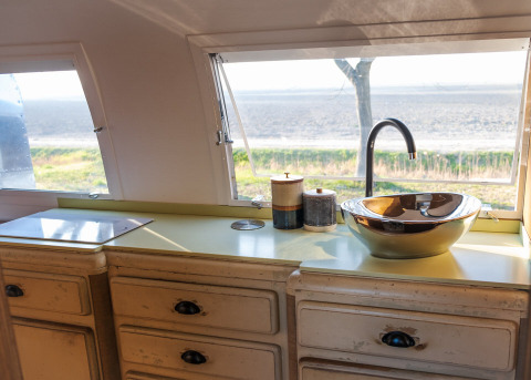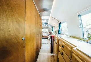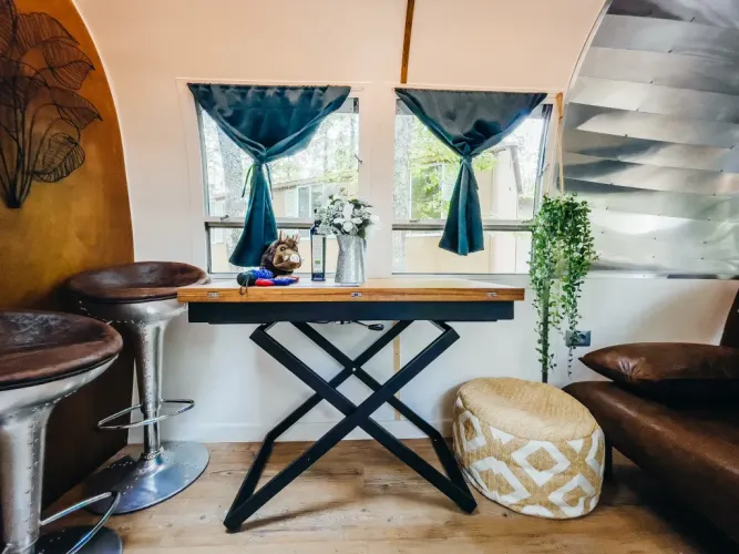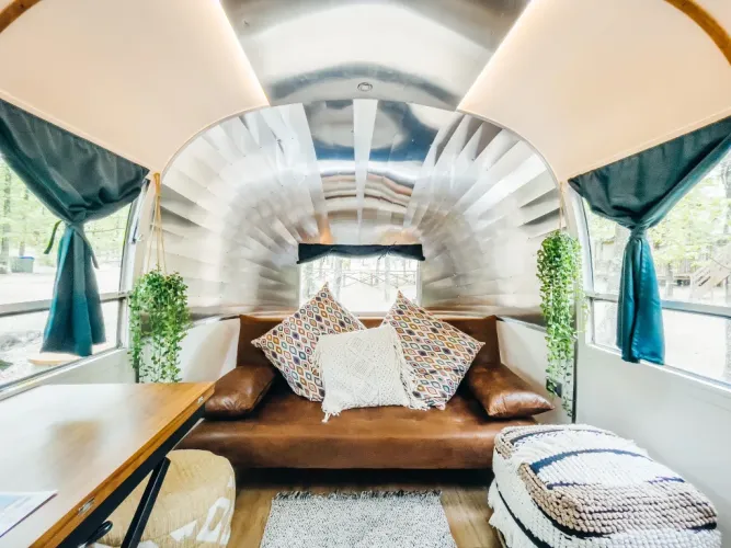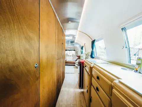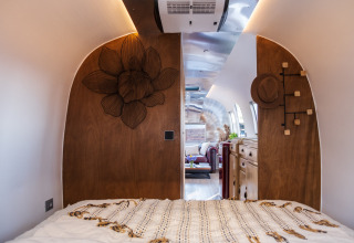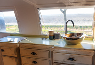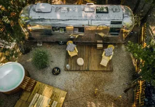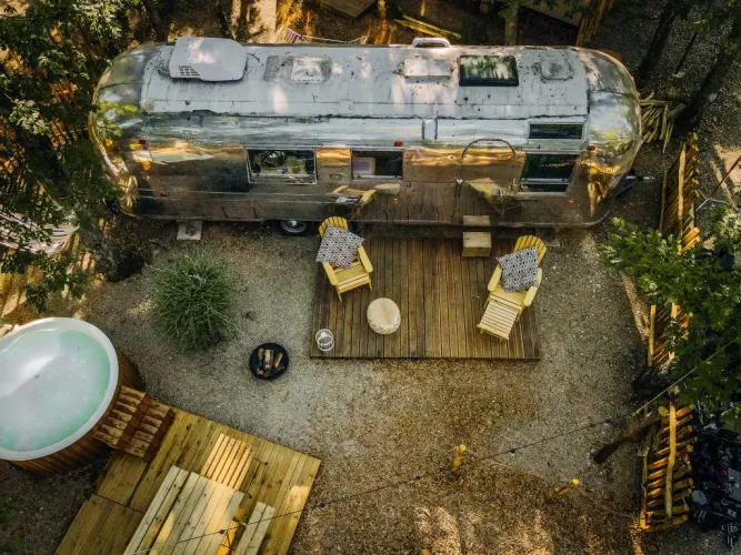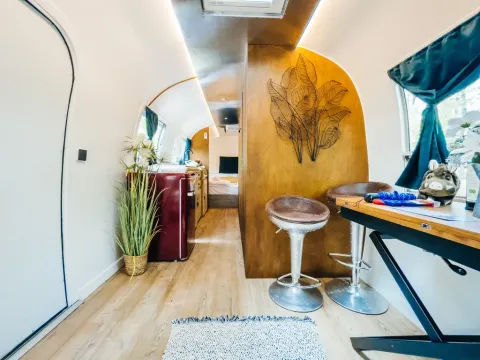 Step back into the 70s with the Airstream, a vintage caravan that delivers a massive "Wow" factor. Completely renovated with stylish wood and aluminum details, this accommodation blends retro charm with modern luxury. Inside, you will find a cozy double bed, a French bed for children, a fully equipped kitchen, and a private bathroom with a shower.