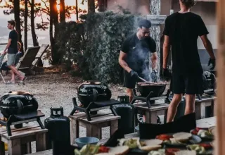 The safari tent is luxuriously furnished with, among other things, box spring mattresses, lounge sofas, a mobile outdoor kitchen, a hammock, a gas barbecue, and a Nespresso machine. Upon arrival, the tent is fully prepared for you, so except for hand and tea towels, you don’t need to bring anything yourself.