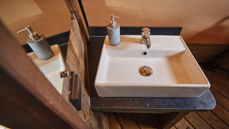 Even before you step inside, your eye catches the private jacuzzi on the spacious terrace—a place of relaxation and fun for the whole family. This will be a glamping experience like you've never had before.
