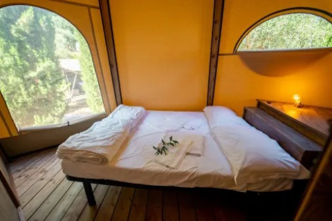 Glamping with a view of Lake Trasimeno. Formerly known as Camping Villaggio Italgest, Trasimeno Glamping Resort is an enchanting place right on the shores of Lago Trasimeno, surrounded by the green hills of Umbria. Here you can escape the crowds and enjoy glamping as it’s meant to be – with luxurious lodge tents or cottages, a swimming paradise, wellness, fitness, and an atmospheric ristorante full of Umbrian flavors. Spotty and the animation team provide entertainment. Ideal for families, couples, and those seeking peace who love comfort, nature, and Italian charm.