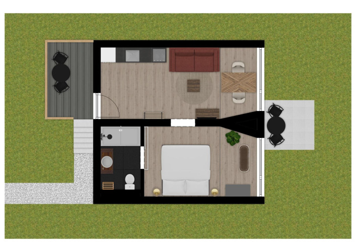 Wake up overlooking the water and breathe in the fresh forest air. Sleep in a comfortable tiny house with a luxurious double bed, modern interior and everything you need for a relaxing stay. Start your day with a coffee from your private deck terrace while birds chirp and the sun slowly lights up the water. No rush, no obligations-just you, nature and endless peace.