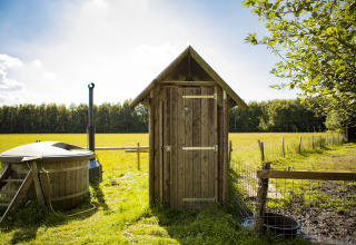 Private bathroom: hot water & a real toilet No shared showers, just your own private shower with hot water right next to your tent. In addition, the tent house has a real flush toilet - so nice during your stay in nature.