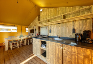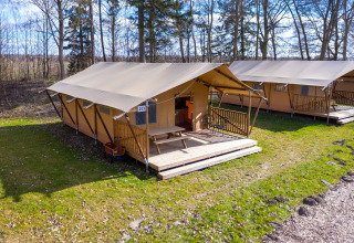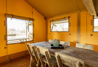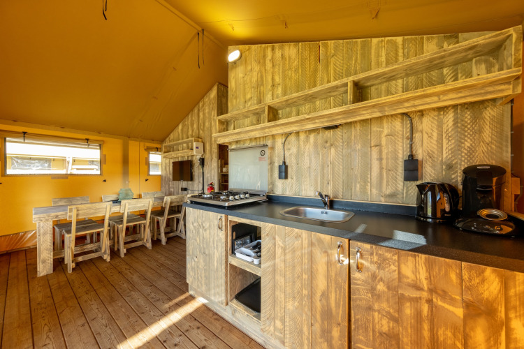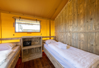 Looking for a relaxed glamping spot with your crew? This cosy tent lodge at Hunzepark is made for easy-going group getaways. Hidden between the trees in a green holiday park, it gives you the fun of camping with the comfort of a holiday home.