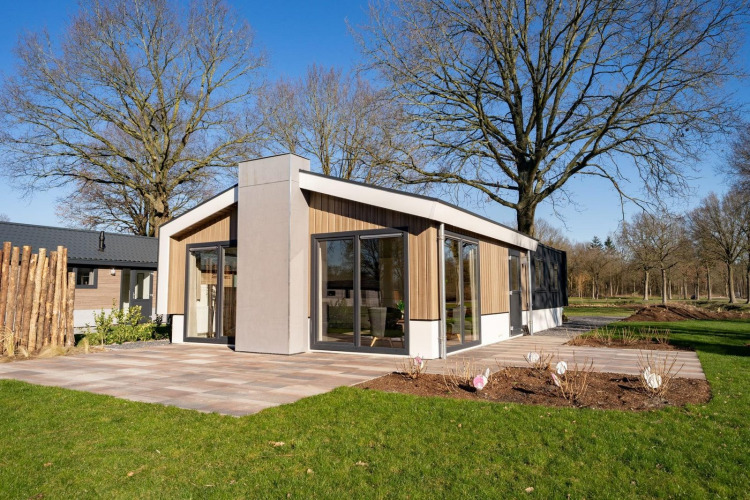 Pavilion 6 is a stylish and contemporary chalet that is fully equipped with all amenities. The detached chalet is single-storey and suitable for 6 people. The living room has a cozy sitting area with television, a dining area, and a kitchen including a dishwasher, an oven, and a microwave. This chalet has 3 bedrooms, one with a double bed and two with two single beds. There is also a bathroom with a toilet, sink, and shower. In the garden you will find a terrace with garden furniture. You can park 1 car at the chalet and free Wi-Fi is available.