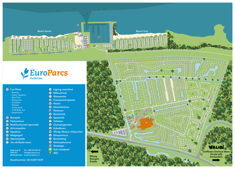 Settle yourself on the shores of the Veluwemeer at EuroParcs Zuiderzee, located in the green heart of Flevoland. This holiday park is a paradise for water sports enthusiasts, adventurers, and nature lovers. Rent a boat, explore the expansive Veluwe forests, or dare to take a ride on the thrilling roller coasters at Walibi Holland. At the park, you'll find a swimming pool, bowling alley, and many more facilities to make sure you have an even better time!