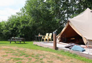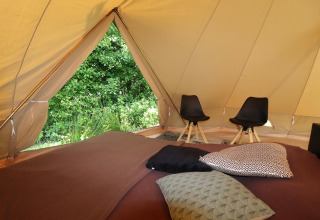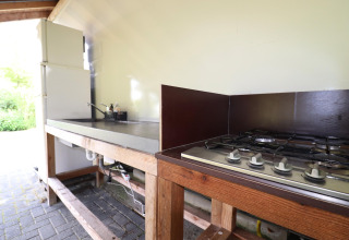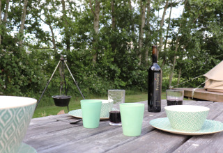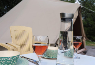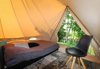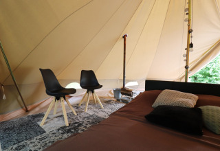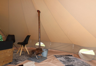 Each tent is tastefully decorated with a warm, rustic feel. Outside you’ll find your own fire pit with a tripod pan – ideal for grilling, simmering or simply relaxing by the flames under a starry sky. Need a bit more convenience? The nearby 4-star campsite offers a shared kitchen with modern facilities, so you can easily switch between campfire cooking and a quick, easy meal.