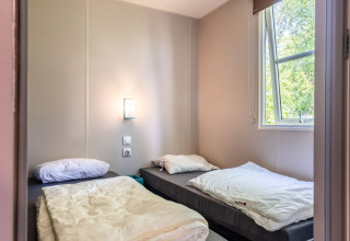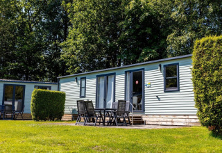 Vacation park Bergumermeer in Friesland rents out spacious six-person Lodges-XL-comfort. These Lodges have a large living room, which increases the living space a lot. These Lodges have a separate toilet, extra bathroom attached to the bedroom, 3 bedrooms, spacious dining area and 2 sliding doors to (for some) the semi-covered terrace. For the Lodge-XL-comfort, these are very fully equipped including dishwasher, large refrigerator and flat screen TV.