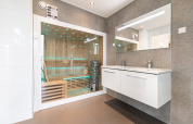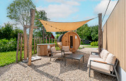 We had a water lodge 2 with sauna and hot tub by the pond over a long weekend in October. The house was very well furnished, but a little overheated on arrival with 35°C and an open fridge. Large bathroom with shower and sauna. The sauna was super bright due to the large glass front and not as gloomy as other saunas. A lot of light came in from the bathroom. It was also equipped with lots of LED's and not a small corner light where you don't even know if it's on or off. We really liked it and used it every day. The hot tub outside was already preheated to 33°C. Unfortunately the weather was not so nice for bathing. The vegetation around the house needs a few more years. There is still a lack of privacy, especially around the hot tub. The terrace by the water was quite overgrown and needs a bit of pruning to be able to use it. But all in all we had a lovely weekend.