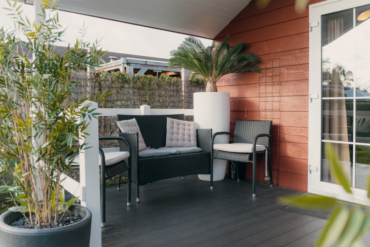 Outside you will find your own wood-fired barrel sauna: what a luxury! After a sauna visit you can rinse yourself off in the garden shower (closed from November to February due to night frost). From the rocking chairs on your porch or the terrace in the enclosed garden you can enjoy the wonderful outdoors.