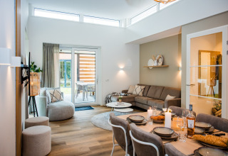 Inside, you’ll find a bright, open living area where everyone can hang out. Start the day with breakfast at the large dining table, plan your adventures, or end the evening with games and long chats. The cosy seating area invites you to curl up after a day outside, and with 2 bathrooms, nobody has to queue too long in the morning.