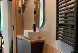 Super privè sanitair met koelkast en een vaatwasser en heerlijke douches.