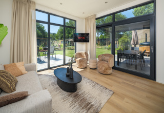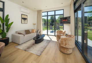 In addition to the stylish decor, the lodge also offers extra comfort with air conditioning, which can both heat and cool, for optimal indoor climate in any season. Outside, enjoy the luxurious pergola, allowing you to sit outside even on hot days or during a light rain.