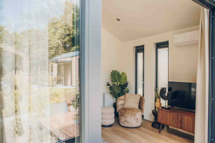 Escape the hustle and bustle and immerse yourself in the comfort of the Tiny Lodge on the Veluwe. This stylish lodge for two offers everything you need for a relaxing stay: an enclosed bedroom, air conditioning and a fully equipped kitchen. After a day of hiking or biking through forests and moorlands, the private hot tub - your own wellness spot under the stars - awaits. Enjoy the warm water surrounded by silence and nature. The level lodge is located in the middle of one of the most beautiful nature reserves in the Netherlands and is ideal for a romantic weekend or a quiet vacation full of comfort.
