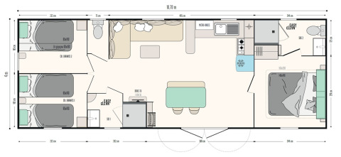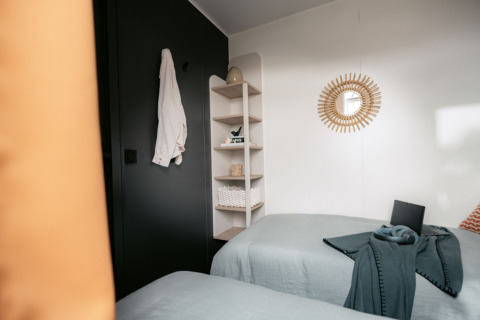 The lodges are ideal for larger families or a holiday with friends. There are two bedrooms, a fully equipped kitchen with bar, comfortable beds, and no less than two bathrooms. The covered veranda invites you to relax – with a book, a fine glass of wine, or a cup of coffee.