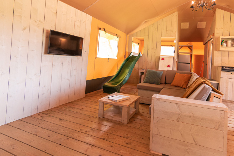 There's even a slide in the lodge, for the kids—how amazing is that! Enjoy outdoor living at Glamping de Bosweide.