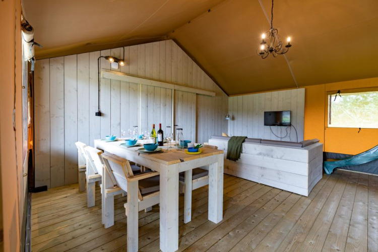 At Glamping de Bosweide, everything revolves around enjoying yourself with the whole family. At this child-friendly glamping site in North Brabant, children experience new adventures every day, from cuddling with donkeys to playing in the indoor play barn and water playground. Meanwhile, relax in a luxury safari tent with private bathroom and a view of the play field. The picking garden, toddler weeks, car-free grounds, and pizza nights complete the experience. Here you’ll find peace, nature, and real togetherness—with children at the center.
