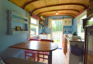 Very cozy, clean and cozy Pipo trailer! In a quiet area with animals (goats, donkeys, chickens, geese and ducks). And plenty of play opportunities for the children. The trampoline is popular, despite being a bit high off the ground and having no safety net. The host and hostess are extremely friendly and the children are allowed to feed the animals if they want and dare. The gypsy wagon is adequately equipped. The combination microwave mentioned in the description is not there, but the gas stove has been replaced by an induction stove (which does take some time to master). Beds are fine. Great pillows and a nice hard mattress. In short, a great stay for some wonderful days!