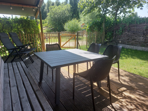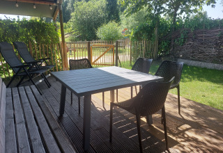 Did you know that from the terrace the children can easily walk to the large climbing pirate ship? This ship is in a large sandbox, and a little further on there are more play equipment. What about you? You have a wonderful view of the beautiful nature of the Barefoot Path. On the terrace itself you can relax.