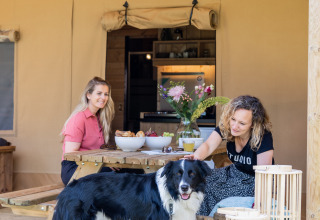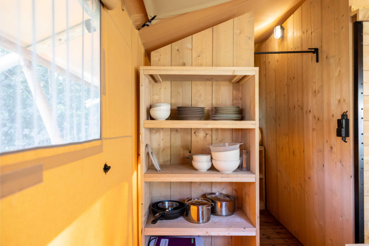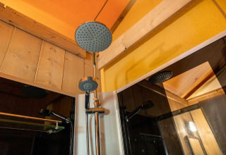 The tent is fully equipped with a stylish bathroom and a spaciously furnished kitchen, so you won't miss a thing. Outside, the veranda invites you to start the day quietly with the first rays of sunshine, while children play and the heath slowly awakens. The chirping of birds and the fresh outdoor air complete the feeling.