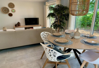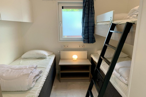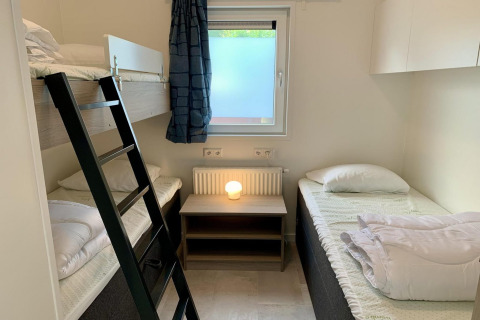 During your stay you can use the park’s indoor swimming pool for free – great fun for kids and adults. Other facilities such as the sauna, mini-golf, and laundry are available for a small fee. Free WiFi, central heating, mosquito nets, and the smoke-free, pet-free policy make this chalet a clean, comfortable choice in every season. Campanula 136 is a place where you can slow down, enjoy nature, and still have everything you need close at hand.