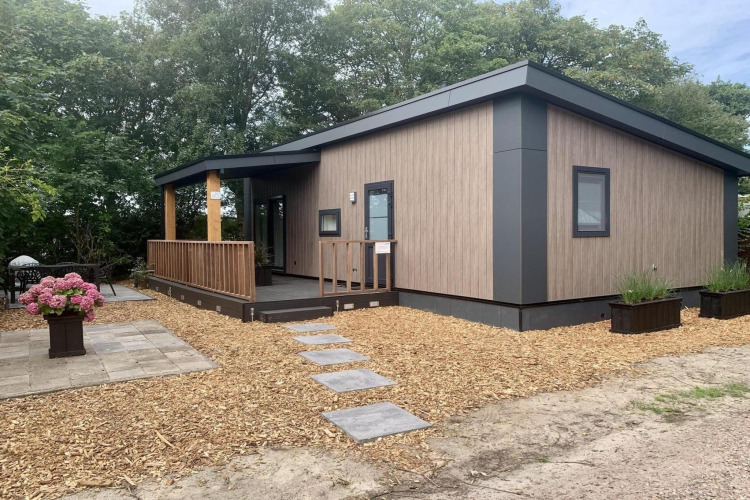 Campanula 136 is a modern, light-filled chalet at the quiet edge of a green holiday park – the perfect spot if you’re looking for peace, comfort, and a touch of nature. In spring you’ll look out over colourful bulb fields, while all year round you enjoy plenty of privacy and a cosy home base for up to five people.