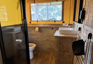 Very nice place, tent was beautiful and luxurious. Very dog friendly. Beautiful surroundings! Staff is very welcoming and friendly.