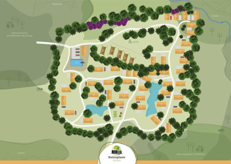 Sleep at Vakantiepark Hölte and discover the charming cities around this glamping in Overijssel. For good shops and restaurants, go to Rijssen. Cycle there in just fifteen minutes and explore the bustling center. Holten is also within cycling distance. After a 10-minute bike ride, you'll find yourself in this authentic village at the edge of the Holterberg. A bit further away are Deventer and Enschede. Both cities are a bit larger and can be reached in just over half an hour. Discover the center of Deventer and stroll through the lively city and along the water. With lovely squares and beautiful streets, this is a perfect option for a day trip. In Enschede, you'll be welcomed by a beautiful city center full of shops and restaurants.