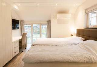 The villa consists of two floors, includes free Wi-Fi, and at least one bedroom per accommodation has a flatscreen TV. All villas are non-smoking and offer parking for one car. On the first floor, you will find two bedrooms and a second bathroom with a whirlpool, sink, and toilet. Here you will also find the traditional infusion sauna. If you are going on holiday with a dog, you can specify this when making your reservation. Please note: other pets are not allowed in the homes.