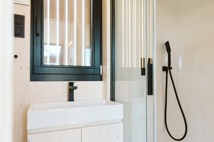 Experiencing a true tiny house experience? Choose Backer, which can accommodate 2 to 4 people (family). The cozy living room offers, through the large sliding doors, a beautiful panorama of the outdoors. The large lounge sofa is a real eye-catcher in the vacation home. Here you can spend wonderful hours, with a good book and a glass of wine. The (parents') bedroom is spacious and easy to close off from the living area via a curtain. The slaapvide is reached via a steep staircase. In combination with the furnishings, the sleeping loft is not suitable for children under the age of five. The vacation home is equipped with an air cooler and also has a small bathroom with toilet, sink and rain shower.
