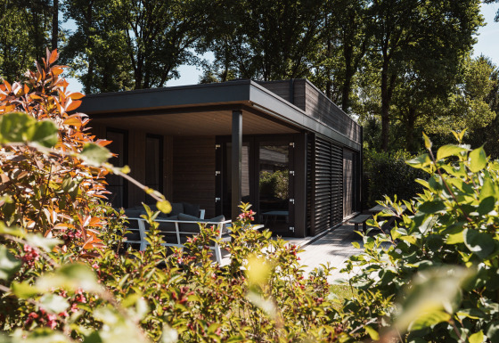 The garden has a covered terrace with a comfortable lounge set and a lawn with a cozy picnic table. The lodge has a spacious storage room with washing and drying machine (please note; not every lodge has a washing and drying machine. This is indicated individually at each lodge).