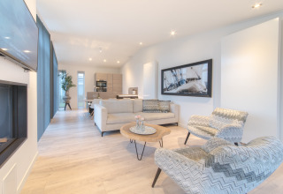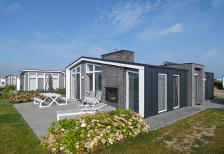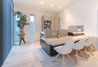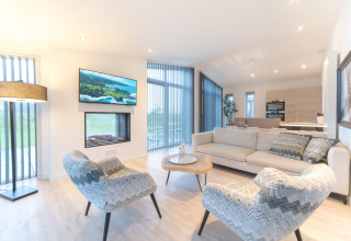 At Water Resort Oosterschelde 13 you stay in a stylish, cosy chalet that feels both luxurious and laid-back. The bright living area is cleverly divided into two corners: a modern kitchen with a central island that doubles as a dining table, and a comfy lounge with a warm gas fireplace. Thanks to the large windows, the whole space is filled with natural light and views of the green surroundings – perfect for a romantic escape or a relaxed break with family or friends.