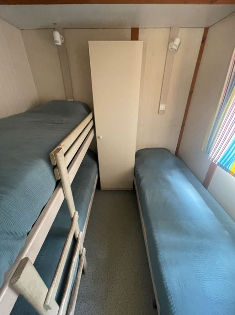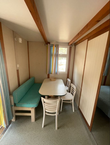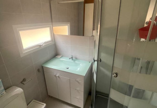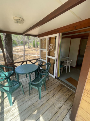 Discover the BASIC FAMILY Bungalow, ideal for 3 to 5 people. It features two bedrooms (one with a double bed and the other with a bunk bed and a single bed), a fully equipped open kitchen, a bathroom with a shower, and a comfortable living room. Enjoy a pleasant and unforgettable stay surrounded by nature at Camping São Miguel.