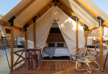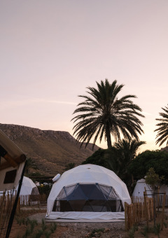 Located in one of Spain’s most impressive natural parks, Cabo de Gata. Stay within walking distance of the beach, surrounded by volcanic mountains, salt flats, and idyllic bays. This glamping combines comfort with pure nature. Enjoy stargazing nights in a dome, walks along the reef of the Sirens, or kayaking trips along secluded bays. A modernly furnished glamping site with a swimming pool, restaurant, and beach bar. From adventurous excursions to lazy beach days: here, everything is about outdoor living and relaxation.