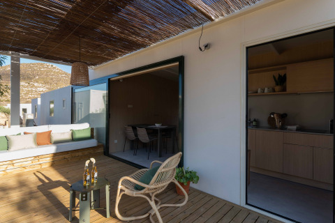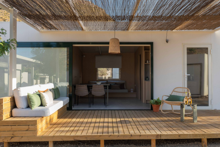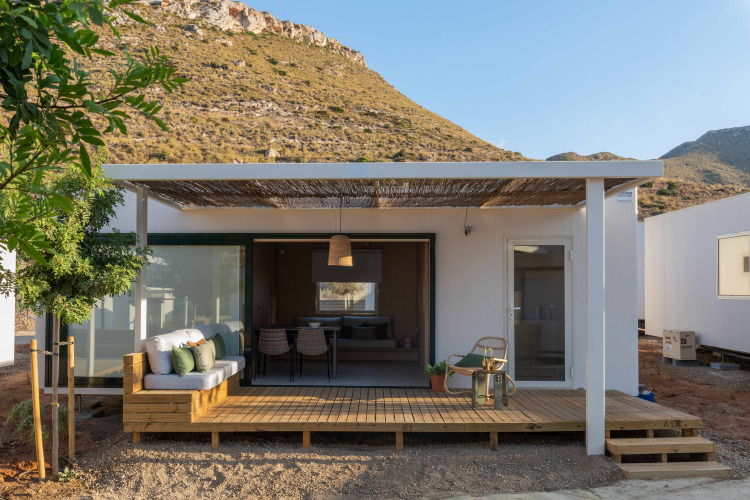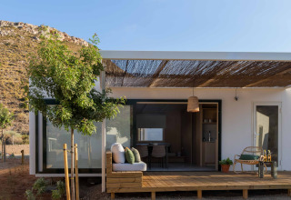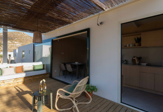 For small groups or families who want to combine outdoor living with comfort, the Mobil Home Family is the perfect base. This modern mobile home is fully integrated into the landscape of Cabo de Gata and offers a spacious, well-designed layout that feels like home.