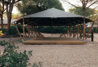 Experience a carefree glamping getaway together in the heart of nature. This comfortable tent is exclusively for adults and is located in a quiet adults-only zone, perfect for couples wanting to relax. Enjoy hotel-quality comfort, but with the added outdoor feeling: air conditioning, a fully private bathroom, and great extras like sheets, towels, and toiletries are included. Inside, you'll find everything you need for a relaxed stay, with practical amenities to easily cool or heat something up.