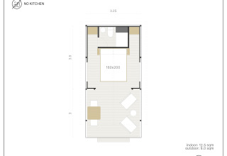 Looking for a comfortable overnight stay in the middle of nature, but without sacrificing luxury? This compact 12 m² glamping tent is specially designed for couples who want to enjoy peace, comfort, and privacy. The accommodation features a double bed, air conditioning, and a modern private bathroom with shower.