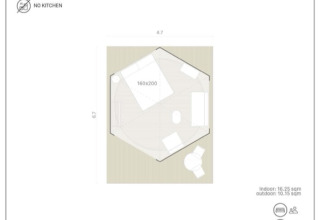 The Bell Tent is perfect for couples or a group of 3 looking for something different in the middle of nature at the campsite, with a touch of luxury. It doesn't have a kitchen or private bathroom, but the public toilets are just a few meters from the tent. The best part? It features a comfortable double bed and a single bed with all essentials such as towels and bed linen, as well as a mini fridge, kitchen utensils, and a microwave.