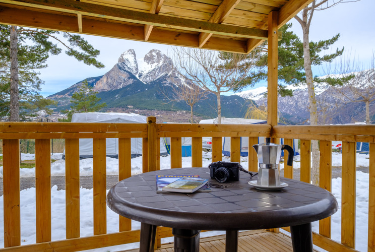 This is a bungalow for up to 4 people, with a kitchen-dining room, two bedrooms and a private bathroom with shower. Equipped with air conditioning and heating. Veranda with barbecue and space to park the car next to the bungalow. Wooden exterior with a beautiful view of the Pedraforca.