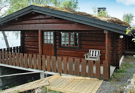 • Turf-roofed seaside log cabin