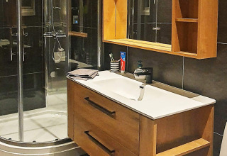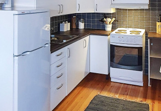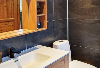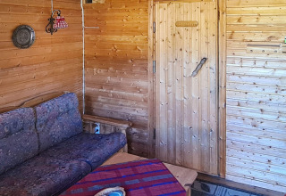 The cabin has 2 bedrooms: one with a double bed (140 cm) and (from 2026) an extra single bed, and one with a family bunk bed, with a wide 120 cm lower bunk and a single upper bunk. In the winter-insulated annex you’ll find another family bunk bed, also with a wide lower bunk (120 cm) and a single upper bunk – great if you’re travelling with a group and want a bit of extra space.