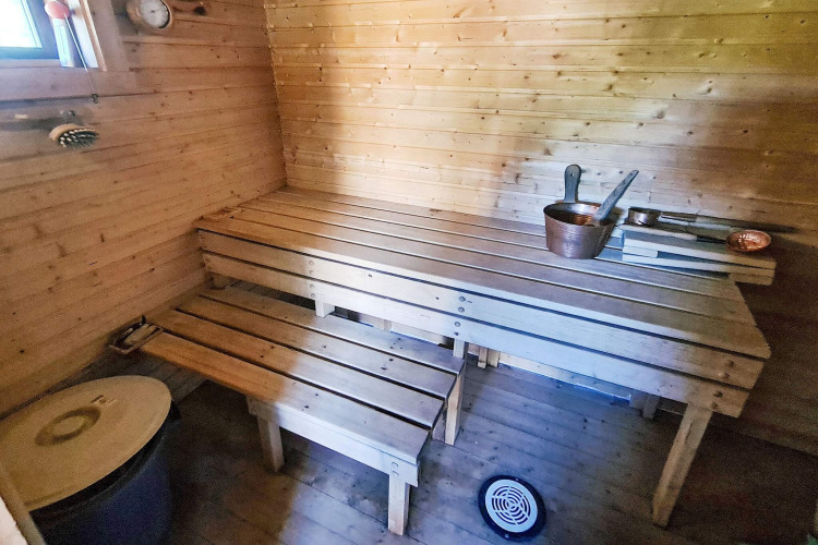 In the yard there’s an additional winter-insulated annex with a double bed and a wood-fired sauna for up to 5 people in a separate building with its own dressing/relax room, sofa and chairs. Ideal for a private sauna session with your group after a day outside.