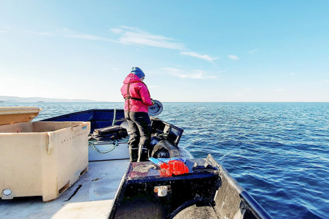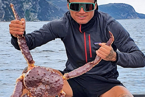 The fjord is rich in fish and known for its large king crab population. You can rent a 24-foot open boat with steering console, 140 hp outboard engine, sonar, GPS, chart plotter, rod holders and life jackets. The boat lies at the floating pier. There’s also a filleting bench with running water and light in the boathouse, plus a freezer by the cabin – everything you need for serious sea fishing. (Boat rental is available from 20 May to 1 October.)