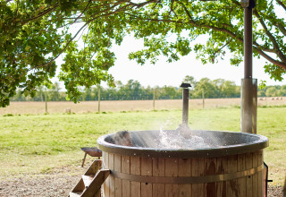 With hot tub Your wood-fired hot tub is exclusive for use during your stay and is located next to or near your canvas hideaway. Perfect for relaxing under the stars or relaxing during the day.